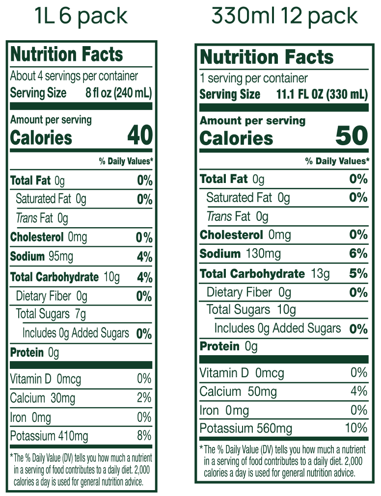 *Bottled at the Source, Never From Concentrate, No Added Sugars, Single Ingredient Plant-Based Hydration